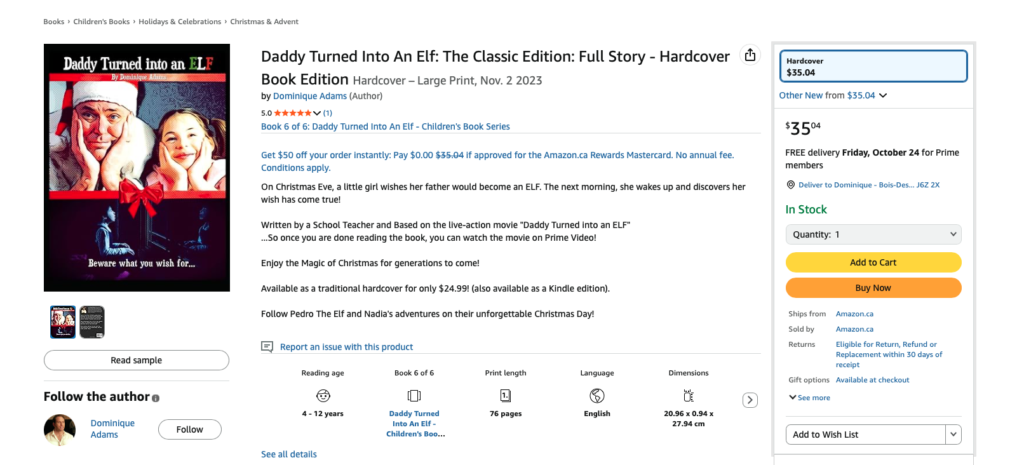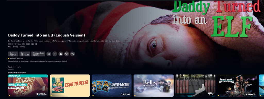 What do you want to do? Rent the movie on Prime Video for $4.50 Check out the Movie Trailer ‘Daddy Turned Into An Elf’ Buy the book on Amazon for $35.00